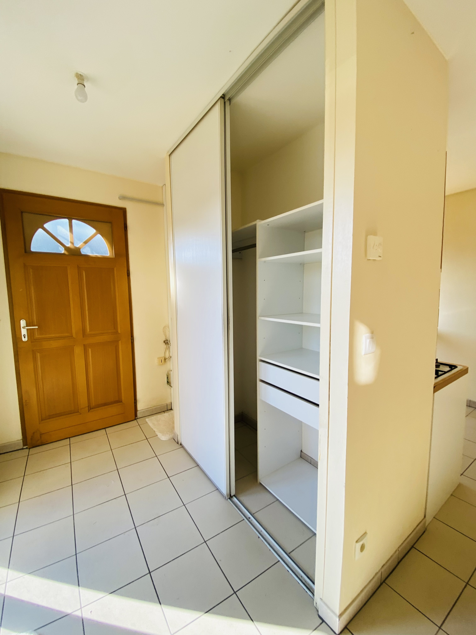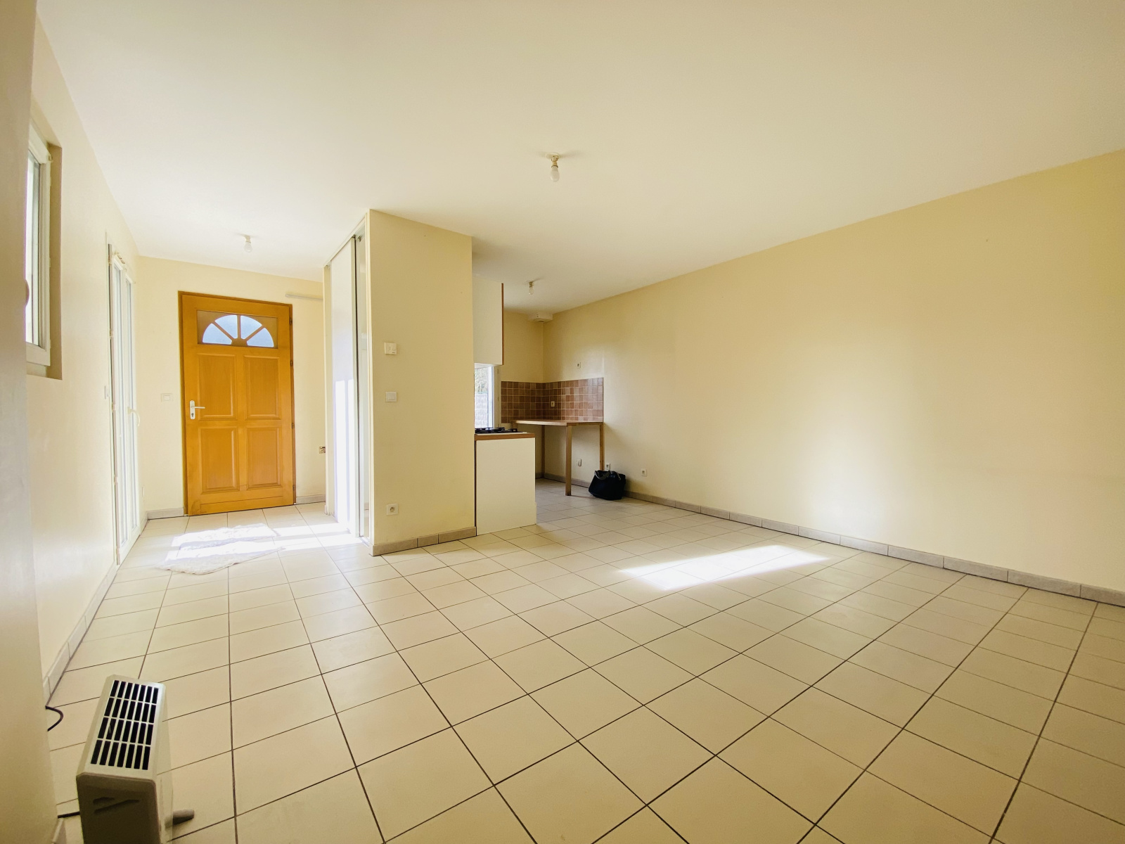 Au RDC , une entrée avec placard, cuisine ouverte sur séjour, salle de bains, toilettes séparées et une pièce de 10 m² environ à aménager en coin TV, extension séjour ou cave-buanderie, cellier.